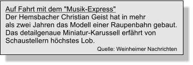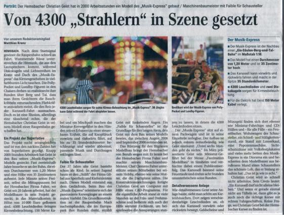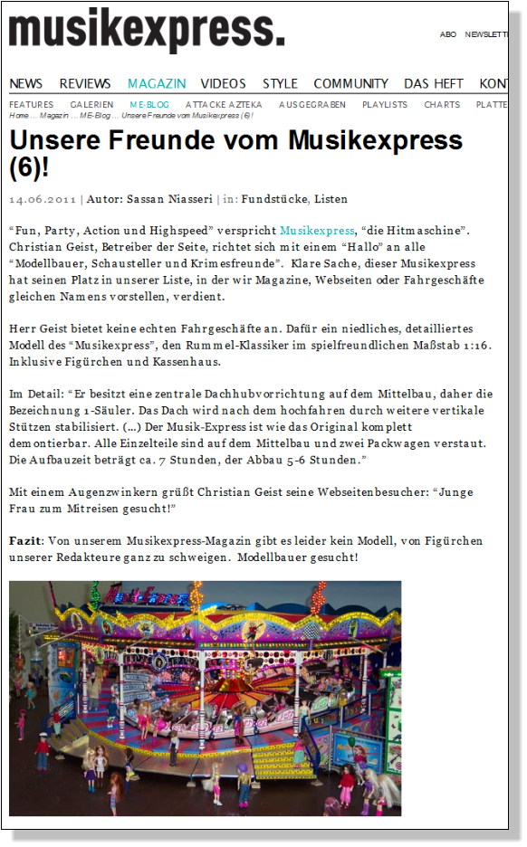 Park Revue) für die beiden super Berichte über mein Musik-Express-Modell bedanken.